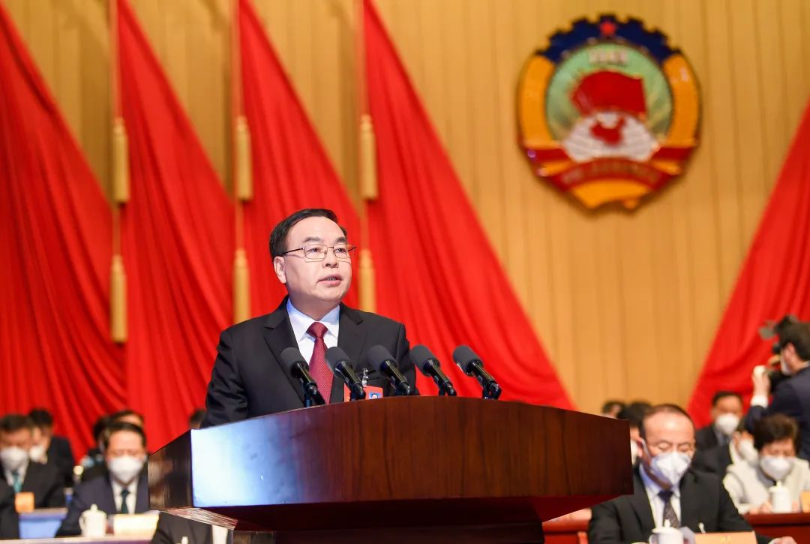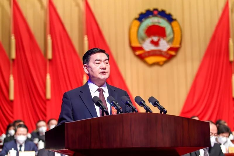 图|唐良智代表十二届省政协常务委员会作工作报告(刘职伟/摄)