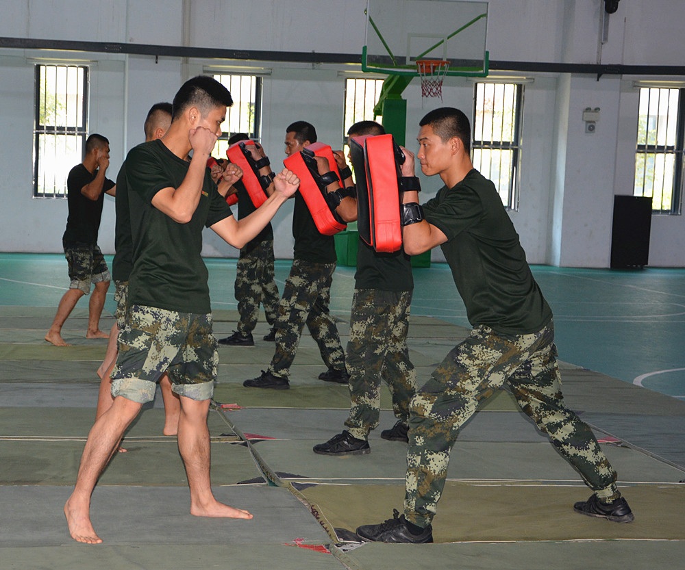 在中队队长蒋荣耀、指导员刘伟的陪同下,余董事长带领集团员工走进了中队的训练馆,观看中队的军事汇报表演。战士们用响亮的口号、整齐的步伐,带着锐不可挡的气势轮番向中环领导及员工献上了刺杀操、擒敌格斗、拳脚靶等精彩军事表演,赢得了现场一片喝彩。