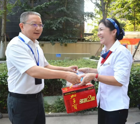近日来,合肥持续高温,生产一线的员工奋战在炎热酷暑中,为了保证员工的安全作业,同时感谢他们坚守岗位的工作态度,7月24日下午,集团总裁乔晓戈,集团副总裁朱玉娟在物业公司总经理陶龙等一行的陪同下,延续中环集团每年“送清凉”的慰问传统,深入中港物业公司的经开区管理处,看望慰问奋战在生产一线的物业人员。