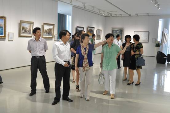 在余竹云董事长的陪同下,文海英主席一行先后参观了中环艺术馆、中环艺术机构、农民工雕塑广场和中环城云邸。参观中,董事长余竹云向她们阐述了中环城项目的业态,近期发展重点、远期发展规划等情况,并介绍了中环集团自建立以来反哺社会,承担社会责任,坚持开展的一系列公益社会活动。