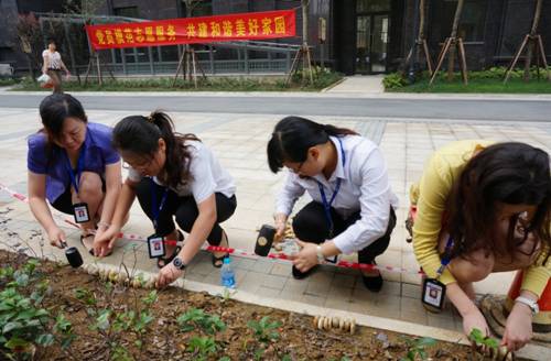 为迎接“七一”,纪念建党92周年,贯彻落实经开区企业党委“驻区企业文明创建工作会议”精神,中环集团党委于6月28日上午,开展迎“‘七一’、创文明,党员志愿服务进社区”活动,组织52名党员、入党积极分子,以及自愿参加劳动的领导和员工,走进“中环城·云邸”和“中环城·紫荆公馆”两个小区,为小区业主发放“文明创建倡议书”,同时,开展义务劳动,美化小区环境,铺鹅卵石、清理排水沟污泥杂物、捡垃圾。在30多度的高温下,他们头顶烈日,不怕苦、不怕脏、不怕累,全身心投入到紧张而又快乐的劳动之中。有的汗流浃背,有的手掌被磨破,有的手皮被碰破……,在2个多小时的劳动中,共发放“文明创建倡议书”700多份,清理排水沟400多米,清理出污泥杂物60多袋,铺鹅卵石200多米,用双手创建文明果,用汗水浇灌文明花,为小区文明创建贡献力量,向建党92周年献礼,受到物业公司、小区业主的热烈欢迎和好评。