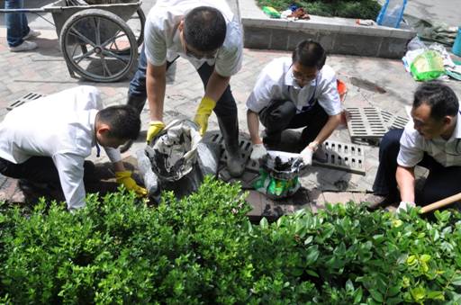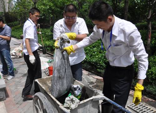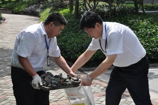 这次党员志愿服务进社区活动,有几个鲜明的特点:一是参加活动的积极性高,行动自觉。充分体现出党员应有的思想觉悟、党性观念和先进性要求,以及“责任源自内心”的中环企业文化理念,能够用党员的标准严格要求自己。二是党员领导带头,示范作用好。商管公司总经理朱玉娟、集团招投标管理中心副总经理何卫东、行政人事管理中心副总经理冯佐军,有关中心总经理助理季克林、王涛、周美红、朱玉成,以及姚金嫚、赵梅、陆春晨、沈义、王俊明、王飞、姜方国等经理级管理干部,他们既是活动的积极参与者,又是活动的组织者和骨干力量,脏活、重活干在前,模范带头,产生了很好的示范效应。三是不怕脏不怕苦不怕累。特别是在“中环城·紫荆公馆”小区清理排水沟污泥杂物、清理垃圾劳动中,季克林、王涛、沈义、王飞、姜方国、宋春光、张传标等不少党员累的汗流浃背,季克林还不顾污水沟臭气熏人,将手伸入污水沟内捞石子等垃圾杂物。四是非党员员工踊跃参加。集团总裁助理黄少铭,客服部副经理张玲带领该部门员工梅露露、陈昌明、王宝祥,以及物业公司部分员工谢琤玲、吴碧霞、聂艾峰、刘强、周晨等,积极参加志愿服务劳动。特别是黄总,以普通员工的身份参加志愿服务劳动,与大家一起清理垃圾,严格要求自己,树立了集团高管队伍以身作则的良好形象。