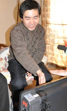 虽然看不见,杨军仍可以用手感觉到取暖器的温暖
