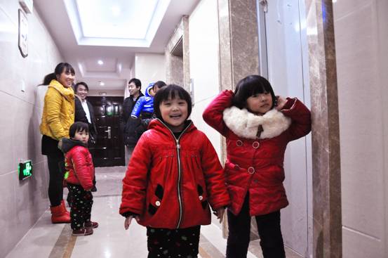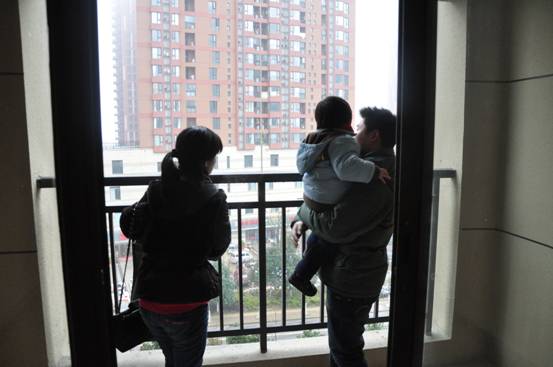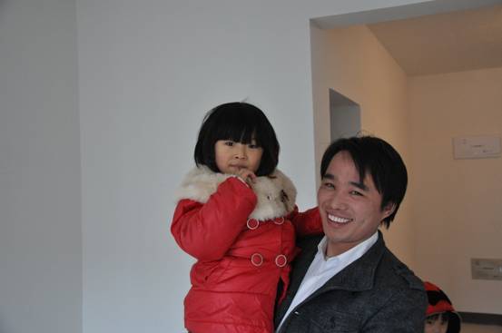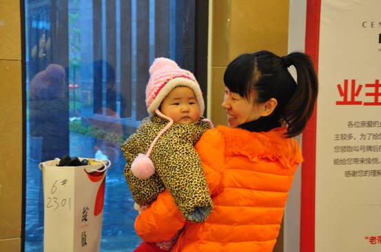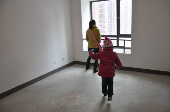 抵不住小朋友撒娇的工作人员抱着业主的女儿去验房