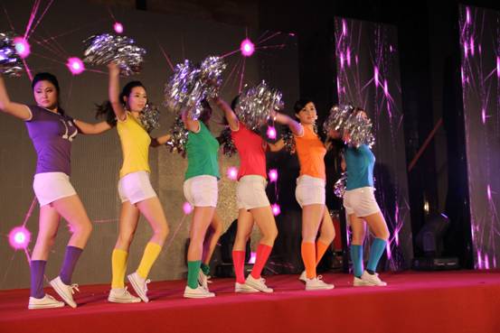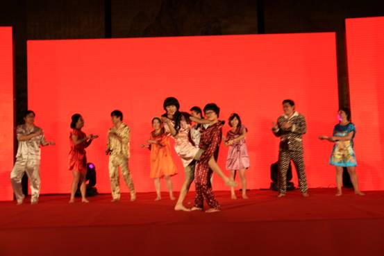 整台晚会节目高潮迭起,精彩纷呈,让忙碌了一年的中环员工得到了彻底地放松。商业管理公司的《夜光舞》借助特制的荧光道具,配合poping 风格的音乐,灵动绚丽,舞动出奇妙的生命之歌;物业管理公司的《军体拳表演》,落脚霹雳轰鸣、坚定有力、飒爽英姿;中恒项目公司的小品《唐伯虎点房产》老剧新演,可谓是才子佳人,笑点频出;舞蹈《DANCE MEDLEY》装扮华丽,充满了动感和活力;员工家属王子萱小朋友和父亲带来的相声《吹牛》,惹得全场观众捧腹大笑;经营管理中心带来的舞蹈《春天花会开》,帅哥们一上场就凭借一身草裙,亮杀了所有观众的眼睛。当晚最有亮点的还数董事长余总即兴演唱的一首《冬天里的一把火》,全体高管也纷纷上台合唱及伴舞,高歌热舞,魅力四射,热情得就像冬天里的一把火,点燃了全场的激情。夸张搞笑的造型、热情洋溢的演出成为当晚的一大亮点。