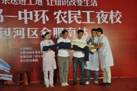 据介绍,此次活动由合肥市城乡建设委员会联合中环投资集团、安徽电视台经济生活频道《帮女郎 帮你忙》栏目等单位主办。活动自开展以来,陆续走进了合肥中环城项目、坝上街旧城改造项目、滨湖要素大市场和顺园项目工地、政务区凯旋门工地、地铁一号线和高铁南站工程等建设工地,为农民工兄弟们送去了一场场丰富精彩的讲座。