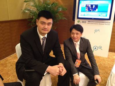 余竹云与姚明就公益的话题,相谈甚欢。