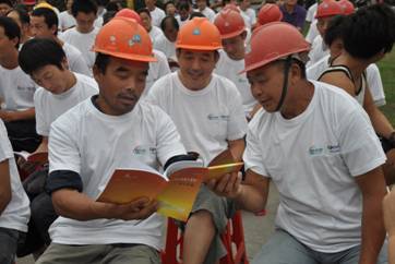 据统计,合肥市目前有农民工近110多万人,其中建筑行业就占据了近一半。而这些农民工基本没有文化娱乐生活。在合肥市建委的指导下,中环城项目在工地现场建设了农民工学校、农民工图书室,为农民工提供学习和业余休闲的场所,还不定期开展技能培训、送文化、放电影活动,每年为农民工送清凉送温暖送医疗送教育。使农民工兄弟快乐工作、快乐生活。