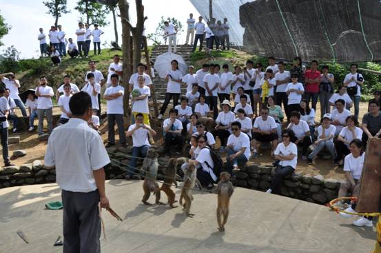 猴岛上观看表演