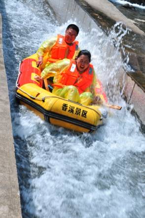 让大家玩的最HIGH的还是素有爱河之称的“香溪”了,速度与激情的体验,快意于山水的乐趣,皮艇与水战的刺激,把本次自驾游活动推向高潮。中环业主、中环工作人员以皮划艇为阵营,以水枪为武器,与近距离的皮艇为敌为友,相互追打嬉闹,此时不分你我、不分敌友、大家都是快乐盟友。漂流一战,给所有的业主留下了难忘的快乐回忆,也建立了彼此深刻的友谊,更是让业主们难忘这次的自驾之旅。