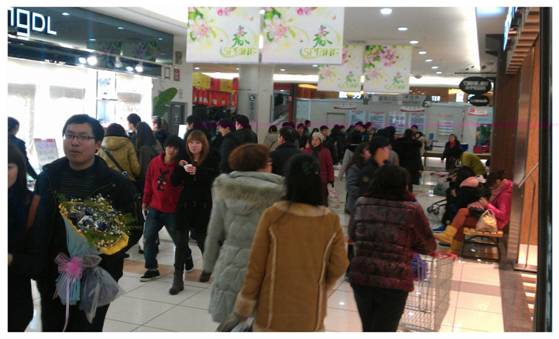虽然天公不作美,一整晚都在下着小雨,但是中环购物中心却人气爆棚,虽然到了打烊时间,餐饮商户门口仍有许多客人在排队等着用餐,中影影院的购票厅更是排着几条长龙,一楼精品服饰区新上市的春装也卖的异常火爆,佳节“甜蜜经济”升温,商场节日氛围极为浓郁。
