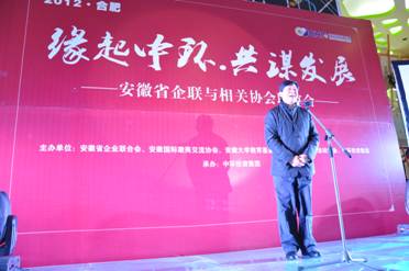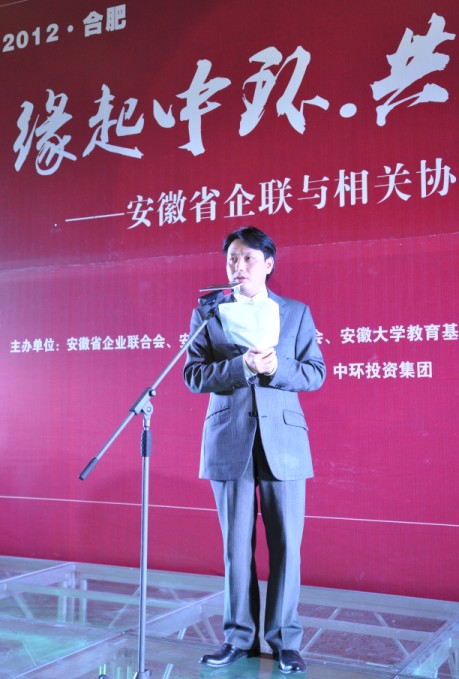 联谊会开始,作为省企业家联合会的副会长和此次活动的承办方,中环投资集团董事长余竹云对各位领导的光临表示了最热烈的欢迎和最诚挚的祝福。他在致辞中表示,安徽现在正处于跨越崛起、高速发展的阶段,也是加快推进皖江城市带,承接产业转移示范区的关键时期,各行各业都得到了快速蓬勃的发展。中环投资集团今日的成绩也离不开社会各界朋友的关心帮助和各位领导的大力支持。他说示,相信这次联谊会将带给大家精神上的振奋和心灵上的享受,彼此感受到各行各业的文化内涵与风韵。