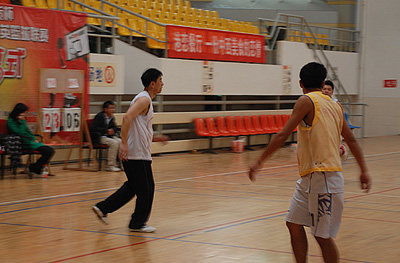 上午10:00,中环篮球队与宝业队激烈开赛。宝业刚开场就首发三分球,但并未命中。随后宝业队员推人犯规,中环罚球率先得分1分。在四节比赛里,中环对宝业的比分分别为8:7,10:14,14:18,22:24!最终中环队以2分之差负于宝业队。
