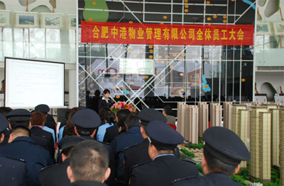 中港物业公司总经理宋文凤女士作工作报告。宋经理汇报了她自2010年6月11日到岗报到至今开展的主要工作和物业公司的概况及出现的问题。并在会上对物业公司全体员工提出要求:“希望中港物业公司的广大员工们在工作中摆正心态、戒骄戒躁、谦虚谨慎、认真学习、沟通协商、互相配合、互相配合、主动工作,以切实做好本职工作的实际行动来支持公司的发展。