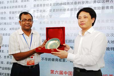印度青年代表团的成员们在中环艺术馆里流连忘返,被徽文化的博大精深所震撼,活动临近结束时,印度青年事务与体育部部长基尔先生与中环投资集团董事长余竹云先生互赠了礼品;据悉这次由中环地产主办的徽商故里主题水彩画作品展将持续至7月5日结束,在此期间将免费向广大市民开放。