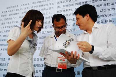 由一百多位印度志愿者、国家级奖项获得者、艺术家、学生代表等组成的第三批印度青年代表团应全国青联邀请来华访问,期间于6月20日至23日在我省进行友好访问,旨在进一步增进中印青年之间的相互了解,促进中印青年的友好交流与合作;作为优秀企业代表的中环地产在这项重要的外事活动中于2010年6月21日,在中环艺术馆迎来了这些尊贵客人——印度青年代表团,他们参加了本次由中环地产主办的徽商故里主题水彩画作品展,是什么吸引了这群异国的朋友?充满神秘特质的印度文化与这场徽派艺术盛典之间将会碰撞出怎样奇异的火花?记者带着深深的好奇来到了举办本次活动的中环艺术馆……