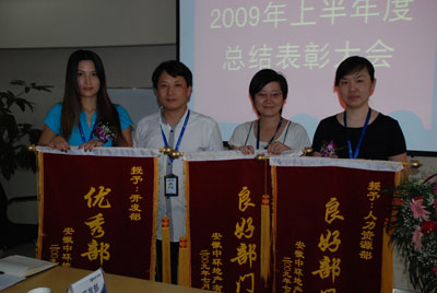 7月26日下午,安徽中环地产有限公司2009年上半年度总结表彰大会在公司会议室隆重举行。公司总经理余竹云先生、公司中高层管理人员及全体普通员工参加会议。
