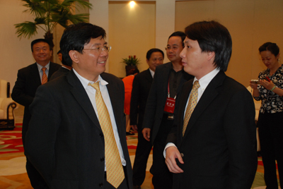 会见中,孙金龙书记代表合肥市委、市政府,对与会商家代表前来参加本届中博会和徽商大会表示热烈欢迎,并简要介绍了合肥经济社会发展情况。孙书记说,合肥这些年来取得的发展,一条重要的经验就是坚持扩大对外开放。我们既不设公开的,也不设隐形的门槛,不搞地方保护主义,而是致力于为来肥投资发展的企业创造一个公正、公平、透明、高效的良好环境。他希望以这次中博会和徽商大会为契机,能够引来更多的企业来肥投资、发展。会谈中孙书记亲切地询问了安徽中环投资集团投建的“中环城”项目进展情况。
