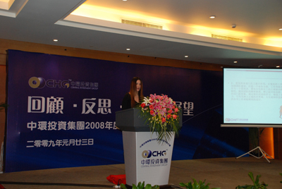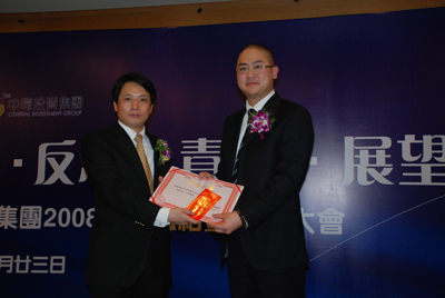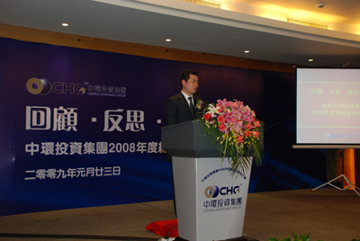2009年1月23日下午,离传统的除夕佳节还有两天,在明媚的阳光和刺骨寒风之下,以“回顾、反思、责任、展望”为主题的中环投资集团公司2008年度总结暨表彰大会在元一希尔顿元福厅隆重召开。中环投资集团公司及其下属子公司的各级领导及全体员工参加了此次大会。会议由集团公司副总裁陈磊先生主持。