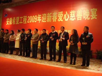 奇迹,缘于关爱:感恩,回报社会;慈善,你我同行。1月10日,由安徽省希望工程办公室主办的“安徽希望工程2009年迎新春爱心慈善晚宴”在合肥明珠大酒店隆重举行。安徽中环投资集团作为安徽省内一家有着良好社会影响的单位应邀出席晚宴,并在现场向安徽希望工程捐赠人民币七万元。此次晚宴所收到的善款将援建十八所希望小学。