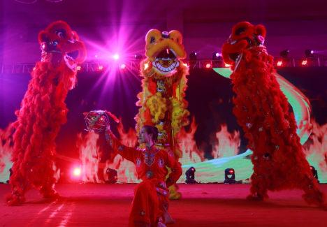 物业公司杂技表演《舞狮》献瑞,象征中环来年的昌盛
