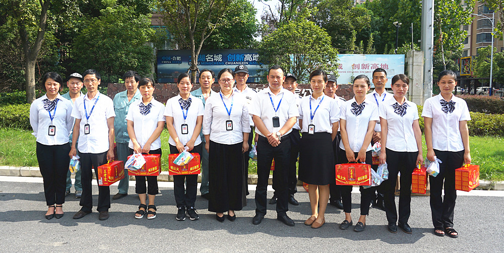 连日来的高温,着实让人感受到了酷暑来袭的威力。为了保证一线员工的身体健康,8月7日下午,物业公司总经理陶龙在总裁办主任胡诺等人的陪同下,看望慰问中环·湖滨公馆物业管理处的一线员工。