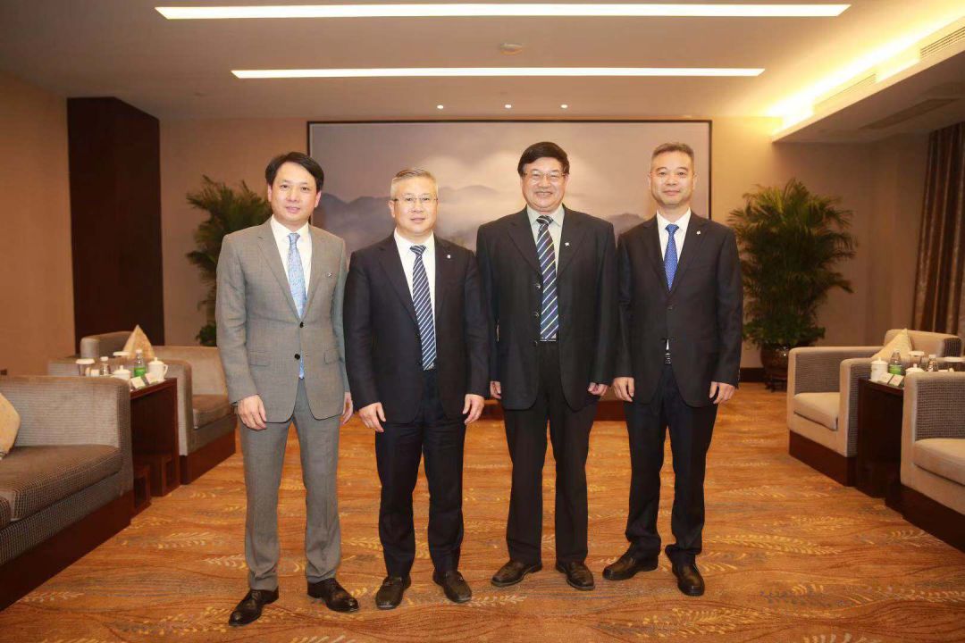 由左至右分别为:时搏网页版登录入口董事长余竹云,衢州市委书记徐文光,世界针灸学会联合会主席、中国针灸学会会长刘保延,衢州市政协副主席、衢江区区委书记吴江平
