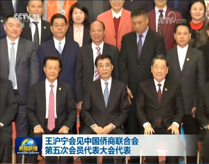 2019年11月18日,中国侨商联合会第五次会员代表大会在京闭幕,中共中央政治局常委、中央书记处书记王沪宁会见出席中国侨商联合会第五次会员代表大会的全体代表。
