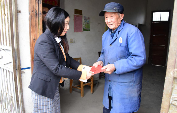 图 | 中环爱心大使余倩文为赵守其老人送上慰问金