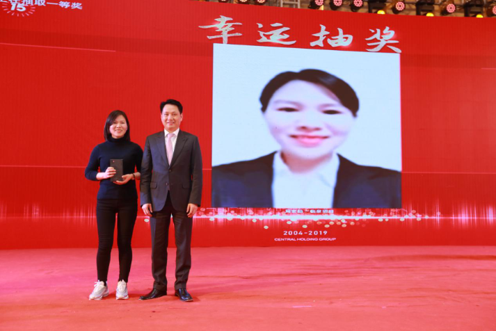 图 | 董事长余竹云为抽奖一等奖的获奖者颁奖