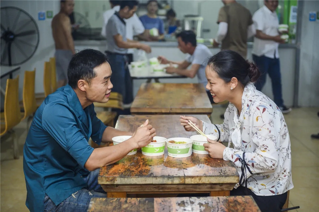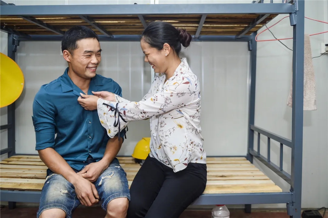 他也相信,只要每天辛勤工作,就能换得早日阖家团聚。他很珍惜现在的工作。即使背井离乡,他和妻子在脚下的项目上,仍然能感受到家的温暖。食堂里可口的小菜,工友亲切的问候,领导不时的关心。都让他们感到尊重和爱护。多了一份难得的安心。