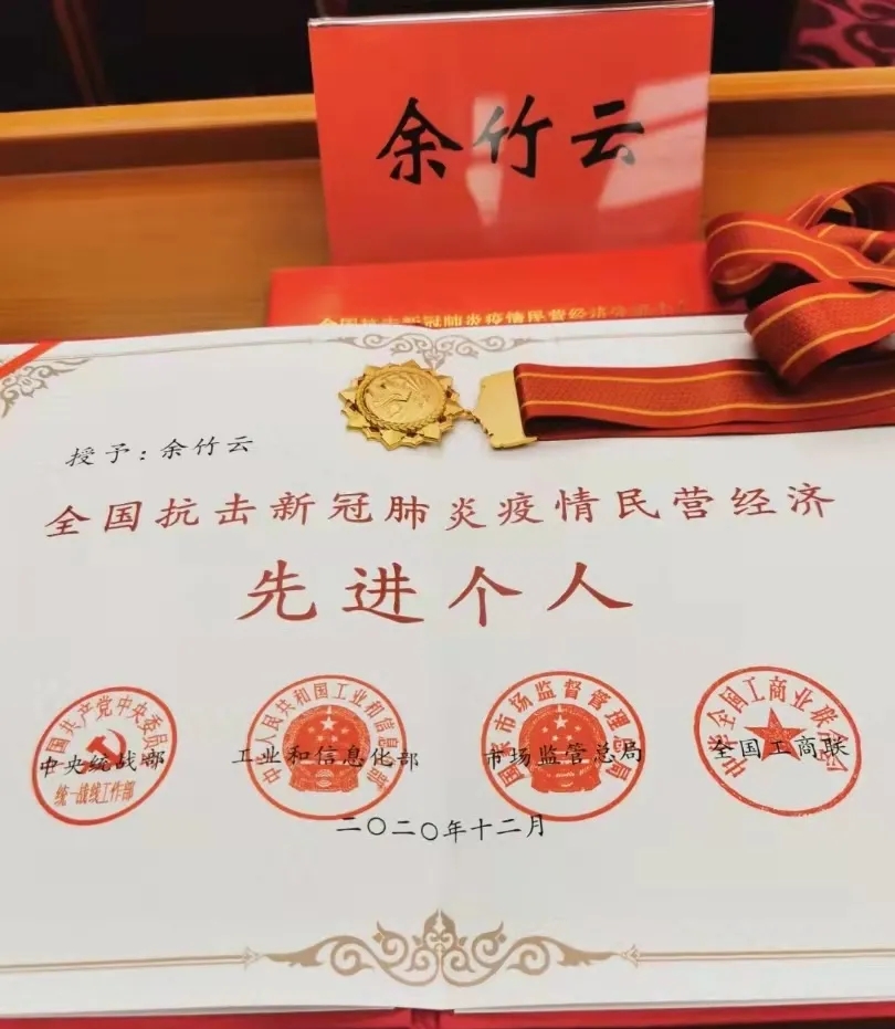 图 | 余竹云荣获“抗疫民营经济先进个人”称号