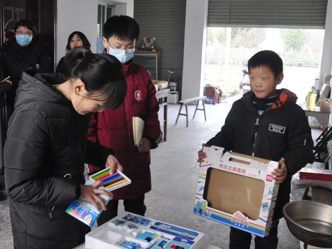 得知心怡的家庭情况,“大爱中环 学子同行”来到了心怡家,为他们送上暖冬物资米、面、油,为心怡姐弟送去学习机、文具、书包。