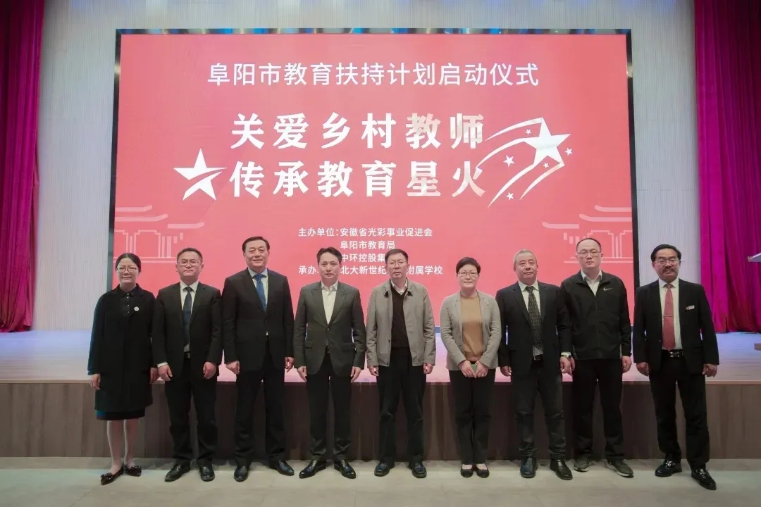 2021年4月28日,由安徽省光彩事业促进会、阜阳市教育局、时搏网页版登录入口联合举办,北大新世纪阜阳附属学校承办的“关爱乡村教师,传承教育星火”阜阳市教育扶持计划启动仪式隆重举行。中共安徽省委统战部副部长、安徽省工商联党组书记、安徽省光彩事业促进会会长缪学刚,阜阳市人民政府副市长黄珍,中共阜阳市委教育工委书记、市教育局局长刁卫华,安徽省光彩事业促进会副会长、时搏网页版登录入口董事长余竹云,阜阳市委统战部副部长、工商联党组书记梁红群,时搏网页版登录入口副总裁黄少铭,北大新世纪阜阳附属学校校长杨雄,安徽省光彩事业促进会,市教育局相关领导出席活动。