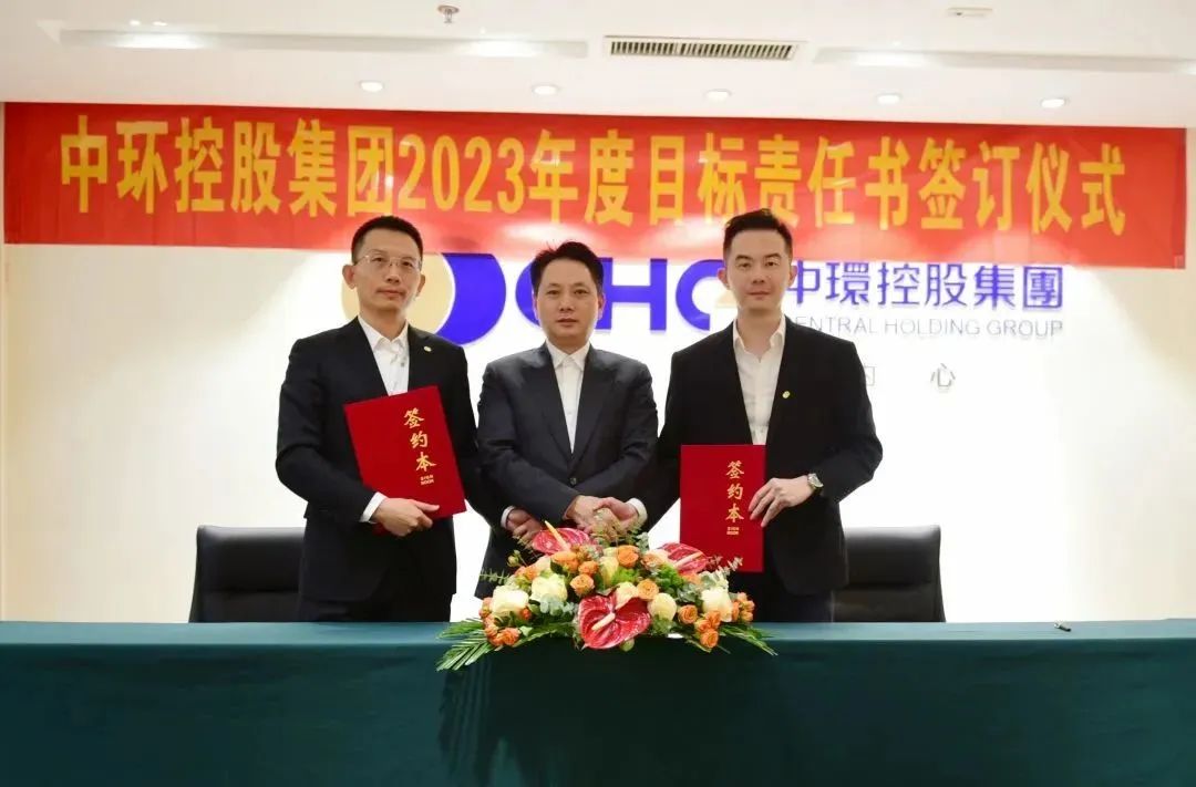 图|董事长余竹云依次与集团公司副总裁朱玉娟、副总裁李钡、副总裁徐建达签订集团公司、凤台时搏网页版登录入口公司、上市公司2023年度目标责任状