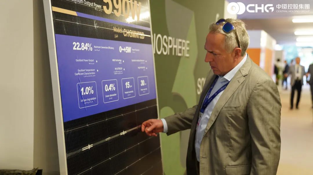 中环低碳本次展示的双面高效组件多项优势引发关注,不仅体现在其高效的温度系数和高双面率特性上,更在于其即使在高达70℃的高温环境下,也能实现稳定发电和输出的高效性能,这对于中东地区等高温环境下的可再生能源发展具有重要意义。