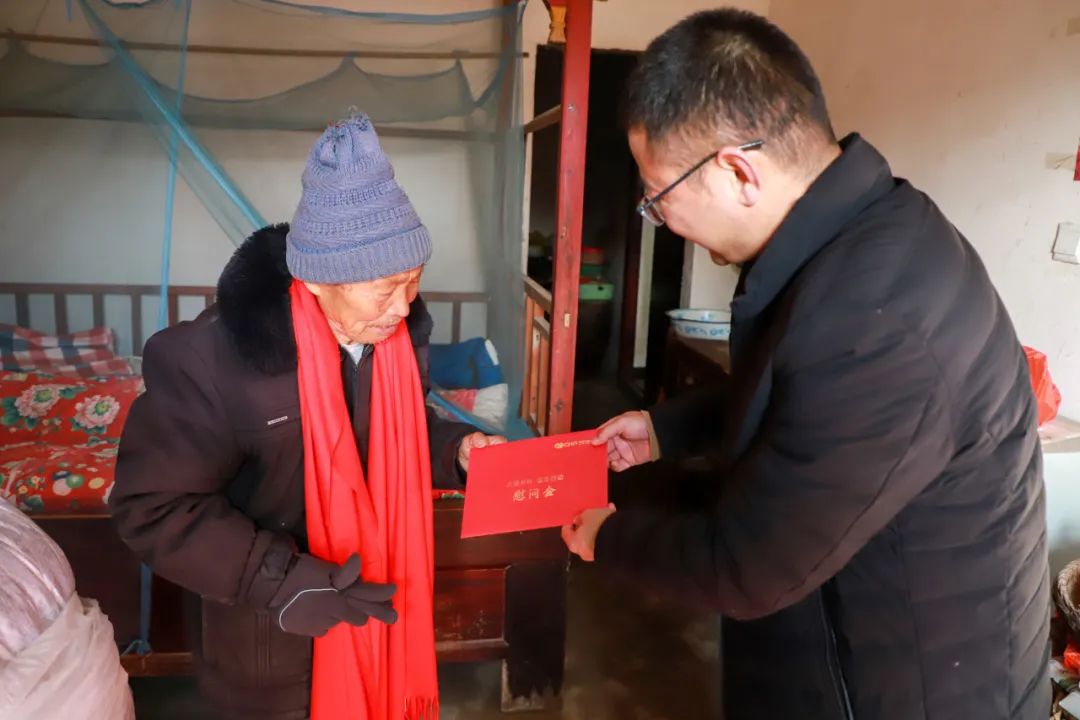 “大爷,晒太阳呐。快过年啦,我们来看望您啦!”中环时搏网页版登录入口控股集团暖心志愿者贾汝寿拎着油,抱着米,扯着嗓子同87岁的倪渐学打着招呼,生怕老人家听不见。