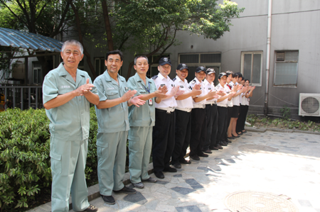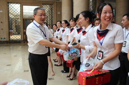 执行总裁乔晓戈为国际大厦物业管理处员工发放防暑降温用品