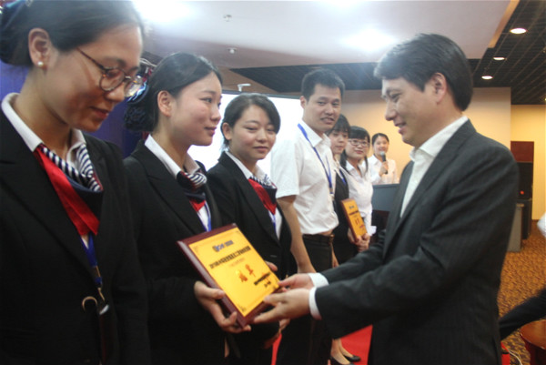 待比拼结束,各大奖项尘埃落定后,董事长余竹云、副总裁高剑、总裁助理李钡分别为各个模块的冠亚季军颁奖。场上瞬间达到高潮。各获胜代表队除了被授予沉甸甸的奖牌外,还有一份丰厚的奖金来犒劳他们的努力与付出。