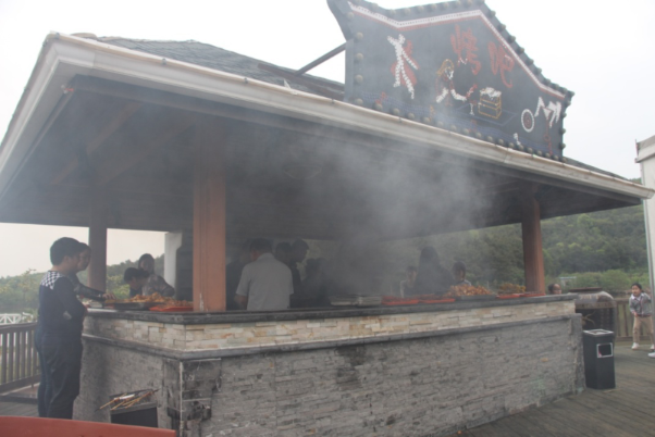 员工在大烤吧内自己动手烧烤