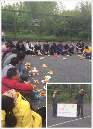 接着,大家围坐在综管部事先布置好的篮球场里,进入“数字大冒险”环节。由综管部同事说出一个数字,从指定一人开始数,数到谁,由其选择事先白板上的数字牌,数字牌背面是针对关于公司部门协调、团队合作、个人利益、团队利益、个人职业发展、员工执行力、结果导向等15个问题,由员工进行分享,让员工有机会了解到团队中出现的问题,并说出内心的想法,大家边吃水果边分享,道出了各自的理解、建议和想法等。自此,本次紫蓬山欢乐行在阵阵掌声中圆满结束。