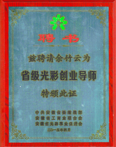 4月8日,由安徽省委统战部、省工商联、省光彩会共同举办的“光彩创业行动”启动仪式在稻香楼宾馆举行,省委常委、统战部部长沈素琍出席并讲话。省人大常委会副主任陈先森,省政府副省长杨振超,省政协副主席童怀伟等出席仪式。启动仪式上,安徽中环投资集团董事长、总裁余竹云先生等36名企业家受聘担任首批“光彩创业导师”。