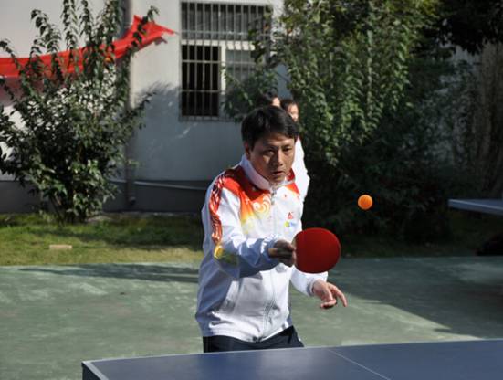 余董事长参加男子乒乓球单打比赛
