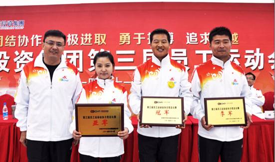 执行总裁乔晓戈为拔河比赛项目颁奖