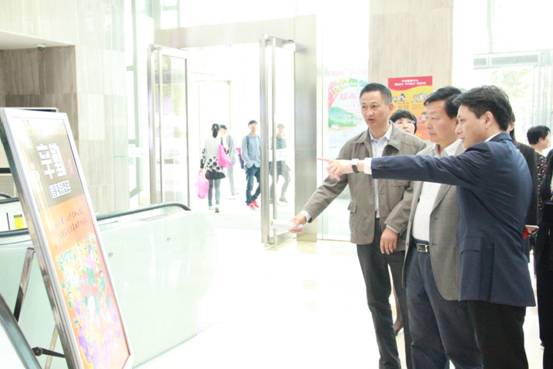 一下车,董主席在公司董事长余竹云的陪同介绍下,检查了购物中心外围广告媒体的公益宣传情况。购物中心大幅外墙广告,广场上的灯箱广告以及LED大屏上正在播放的公益宣传片,让董主席一行感到满意,对中环购物中心的工作表示了肯定。
