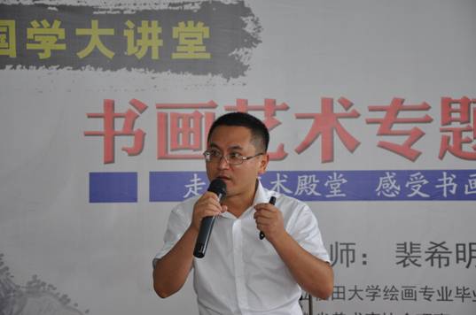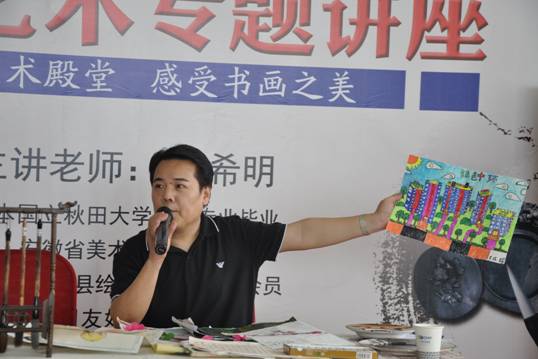 军旅文化体验结束后,下午13:30,孩子们来到中环艺术馆,参加本届中环国学大讲堂,聆听艺术名家裴希明老师书画艺术专题讲座。除了现场书法、现场绘画、现场演示观摩等,裴希明老师为童子军娓娓讲述了中国传统书画艺术起源,传授中国书法与绘画基本技法,教大家如何鉴赏书画艺术作品,并分享了自己的日本求学之路与艺术人生感悟。据了解,裴希明老师毕业于日本国立秋田大学绘画专业,是安徽省美术家协会理事、日本国秋田县绘画美术院特邀会员,现在是合肥中日友好美术馆创作员,黄宾虹美术馆副馆长,专职画家。
