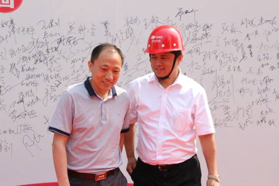 在承诺墙前,长丰县领导与我司领导亲切交谈