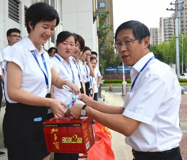 随后,副总裁朱玉娟为每位员工递上了饮料、藿香正气水、人丹、风油精、毛巾、香皂等防暑降温用品。这份清凉传递到了每位员工的心中,激励着他们用更好的成绩来回报公司的关爱。