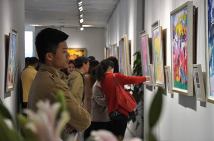 作画如此,画展亦然。简单而隆重的开场致辞,小型却别出心裁的酒会,都像他的画作那般,洋洋洒洒,多画两笔和少画两笔,看似随心所欲,其实独具匠心。一束香水百合也吐露出画家心中纷繁盛开的艺术景象。端一杯红酒,咀嚼着杨梅、曲奇的别样浓香,闻着松节油和亚麻布奇特的滋味,伫立于画作前,凝神良久,遐思联翩。