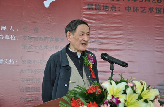 2014年3月28号下午3点,经霜益艳老少红——萧龙士、萧承震父子书画展在中环艺术馆隆重开幕,本次书画展由安徽省政府参事室、省文史研究馆、萧龙士艺术研究会以及中环艺术馆联合主办。展出百岁画家萧龙士在不同阶段的60余幅精品之作及萧承震40余幅佳作。以及萧龙士家族的老照片、画案上曾伴随萧龙士作画的笔墨纸砚以及教诲后辈的信笺等物品。原省政协副主席杜诚,省政府参事室党组书记、主任周庆,中央文史馆书画院安徽分院院长、省政协常委、省政协人口资源环境委员会副主任邱江辉,省政府办公厅副巡视员、省文史馆副馆长余家林,省美协主席张松,省美协副主席王佛生,著名艺术评论家郭因,中环投资集团总裁助理黄少铭以及安徽艺术界的知名人士、各界朋友均出席了开幕式。